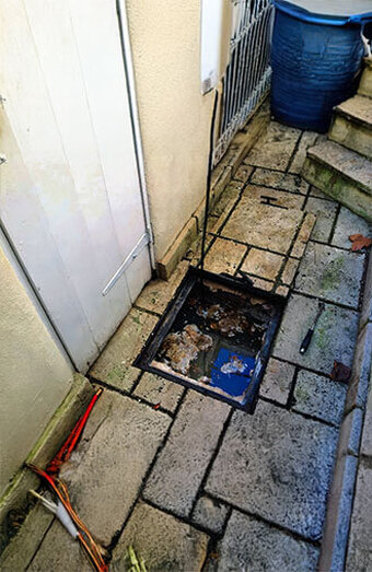 Urgent clearing of blocked ORGs connected to stormwater systems to prevent backflow during heavy rain and protect against property flooding.